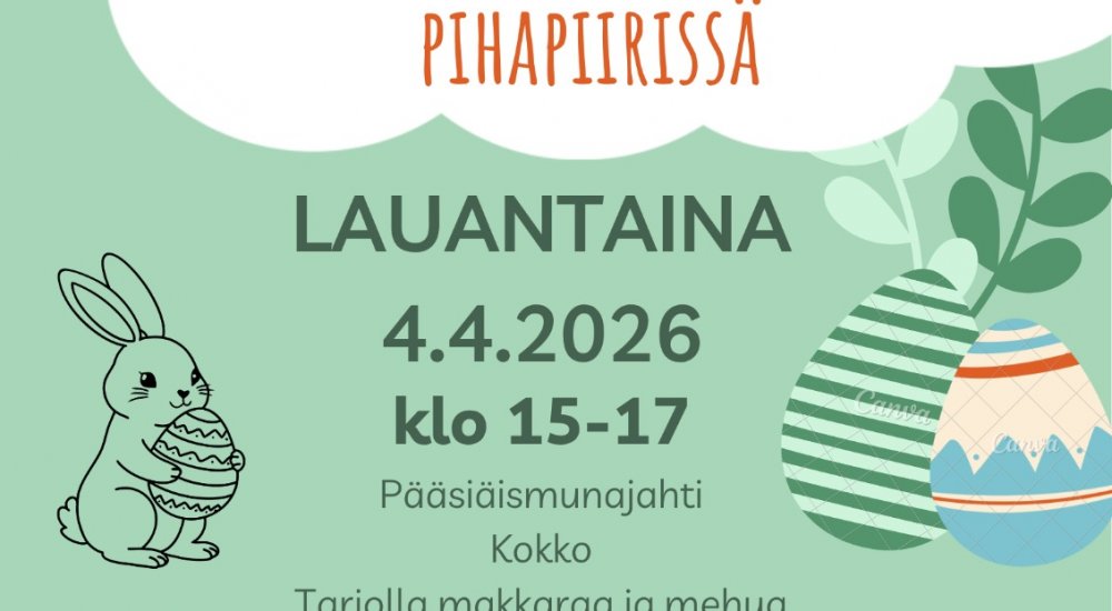 Poltetaan pääsiäiskokko ja paikalla makkaraa ja mehua sekä lapsille pääsiäismunajahtia.
