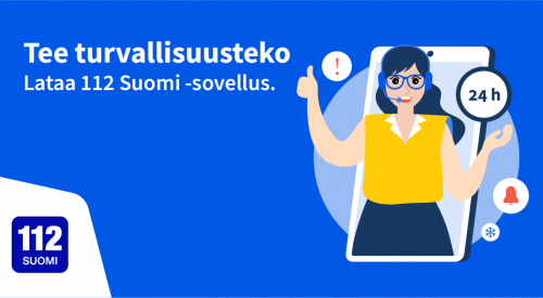 Tee turvallisuusteko ja lataa 112 Suomi -sovellus. Saat apua oikeaan paikkaan hätä- ja ongelmatilanteissa. Sovelluksesta löydät myös päivystysnumeroita kiireettömään avuntarpeeseen ja lisäksi saat vaara- ja viranomaistiedotteet suoraan puhelimeesi.