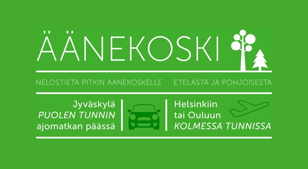 Äänekoski - Tulevaisuus asuu täällä. Äänekoski on monien mahdollisuuksien kaupunki. Äänekoski on pohjoisen Keski-Suomen keskuskaupunki ja biokiertotalouden keskittymä, jossa kesyttämätön luonto ja korkea teknologia kohtaavat.