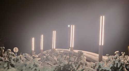 Suolahden Asemakadun liikenneympyrän taideteos on valmistunut ennen 2000-lukua ja valaisimet olivat sen aikakauden tekniikka ja isoja projektorivalaisimia. Liikenneympyrä oli aikaisemmin Elyn hoidossa ja muutama vuosi sitten se luovutettiin kaupungille, jolloin tuli mahdolliseksi suunnitella ja korjata teoksen valaistus.