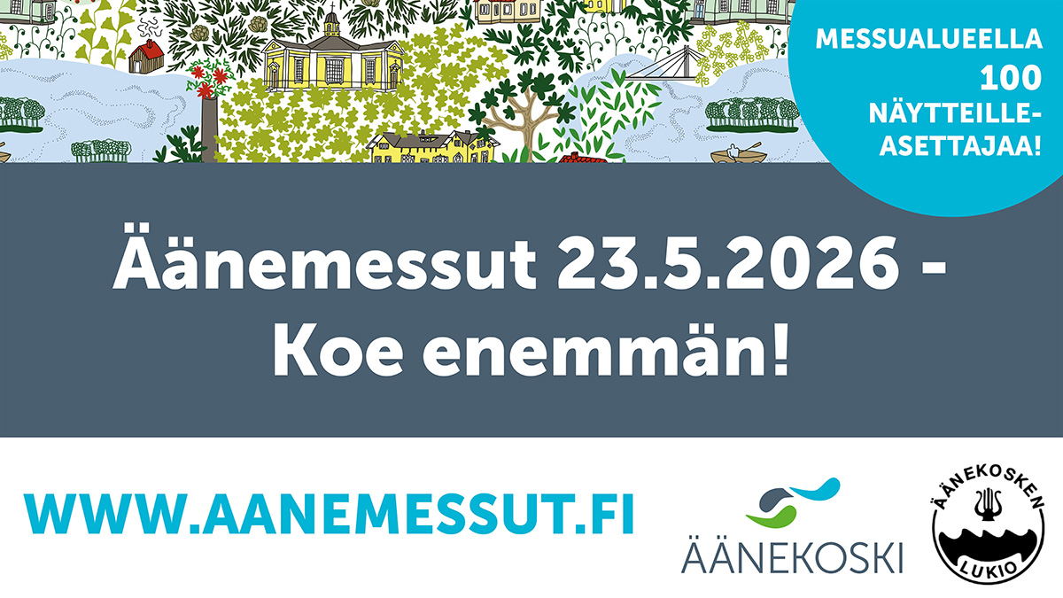 Äänemessut järjestetään Pankkarilla lauantaina 23.5.2026 klo 10-16. Messujärjestelyistä vastaa Äänekosken kaupunki ja lukion yrittäjyyskasvatuksen väki. Mukana on noin sata näytteilleasettajaa. Tervetuloa mukaan!