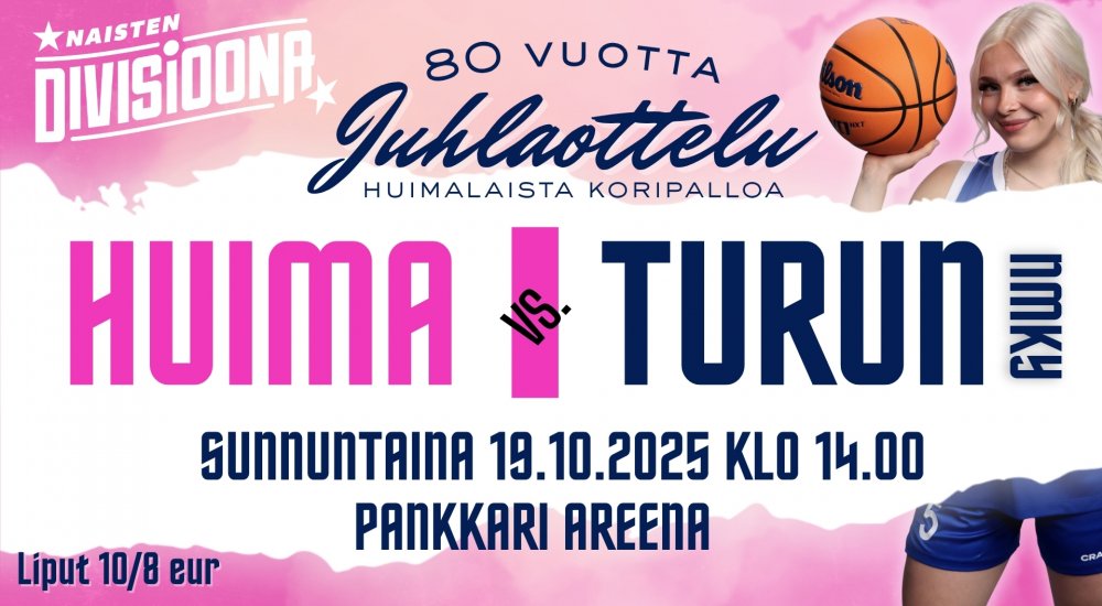 Huiman naiset pelaavat kauden ensimmäisen kotipelinsä ja samalla juhlistetaan koripallon 80-vuotista historiaa Äänekoskella. Vastaan asettuu Turun NMKY ja luvassa on juhlatunnelmaa, vauhdikasta korist...