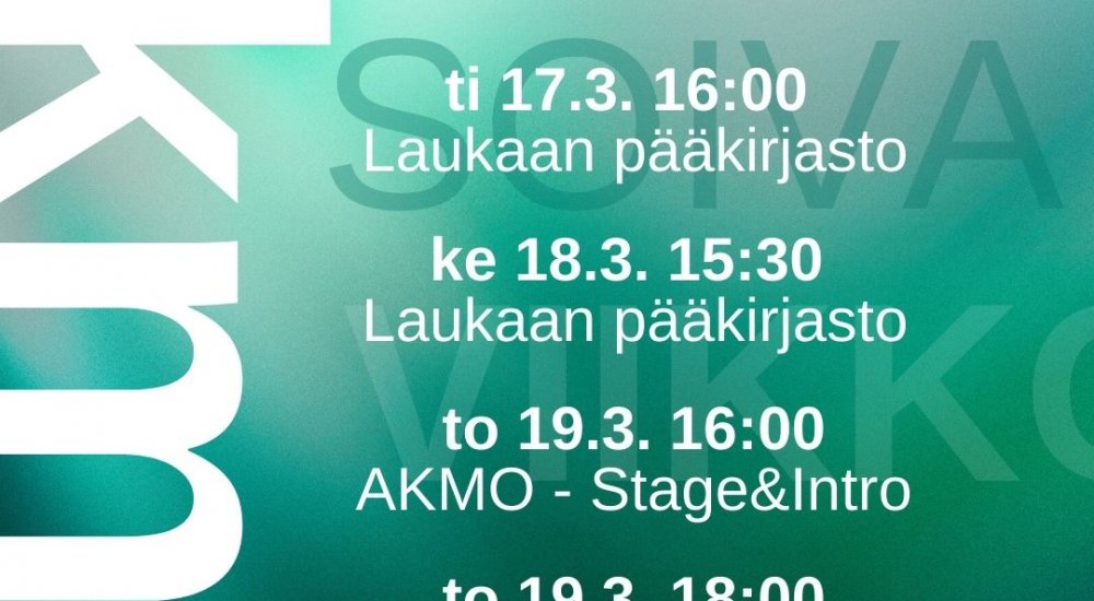 Äänekosken kaupungin tapahtumakalenterista löydät kootusti menovinkit Äänekosken tapahtumiin ja voit ilmoittaa tapahtumasi mukaan maksutta. Anna Äänekosken tapahtuma- ja kulttuuritarjonnan yllättää monipuolisuudellaan!