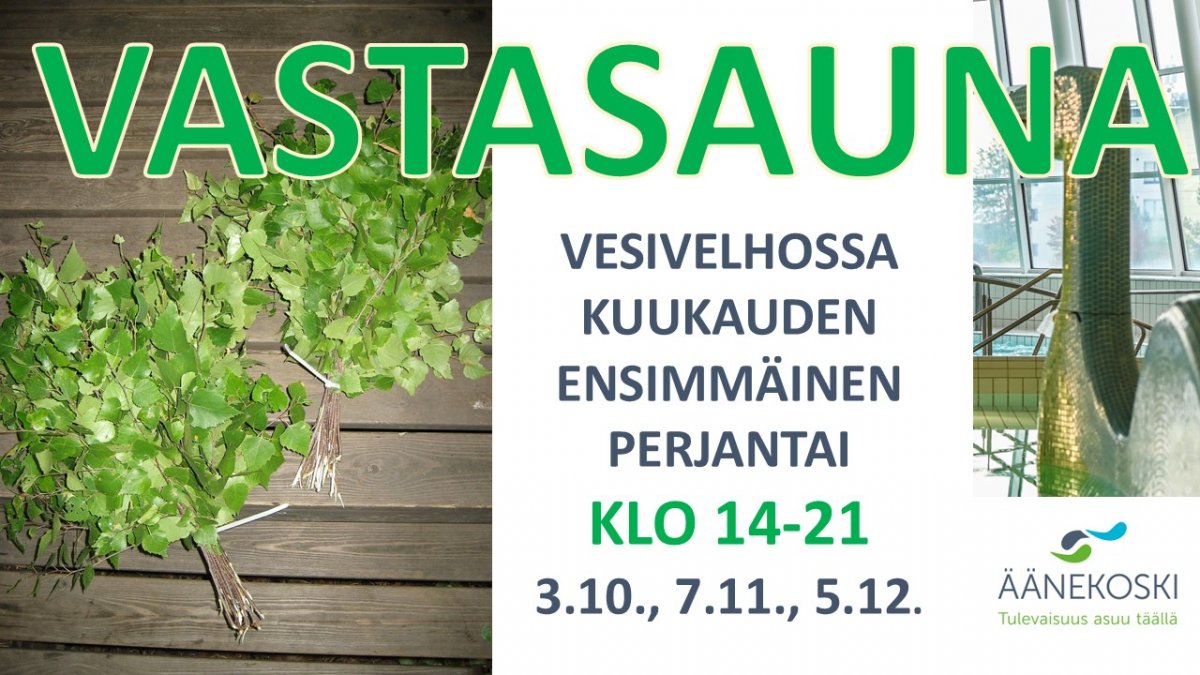 Tervetuloa VesiVelhoon vastasaunaan. Vihtomismahdollisuus sekä naisten että miesten puolella.