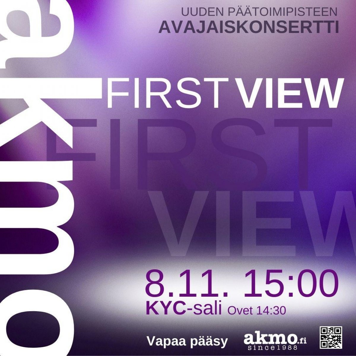 AKMO:n uuden päätoimipisteen avajaiskonsertti. Vapaa pääsy. Ovet avautuvat klo 14.30