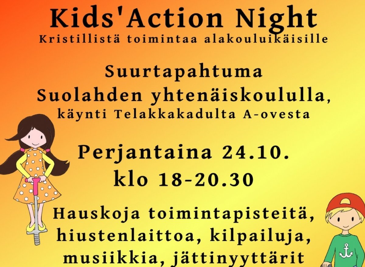 Illassa on kolme osiota: aluksi laulua ja lyhyt hengellinen opetus, välissä toimintapisteet ja nyyttäri, jonne voi tuoda vähän syötävää, lopuksi kisailuja ja rukoushetki. Myös vanhemmat ovat tervetulleita mukaan ilmaiseen tapahtumaan. Sisäänkäynti Telakkakadulta, A-ovesta.