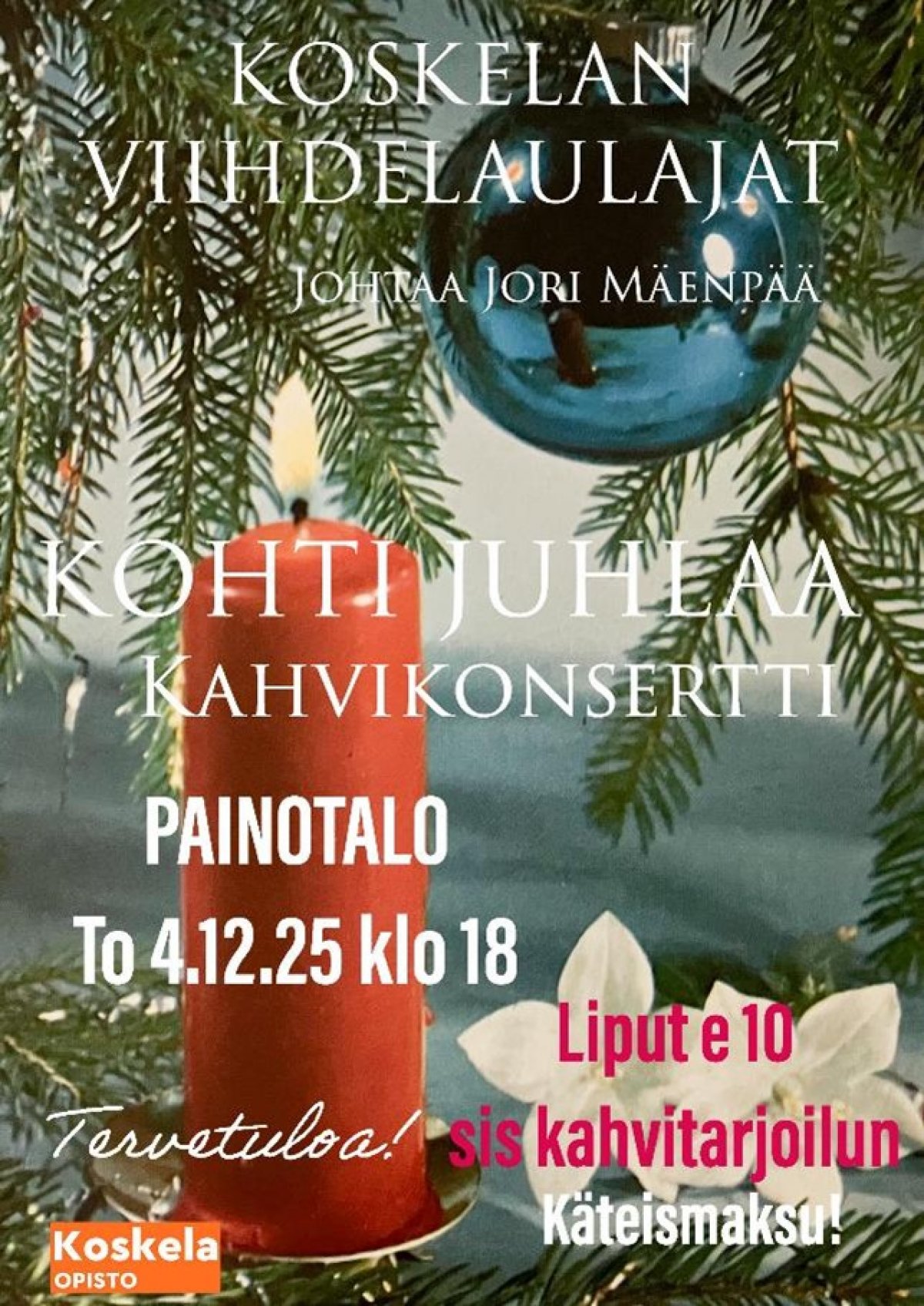 Koskelan Viihdelaulajat kutsuvat sinut tunnelmalliseen konserttiin, jossa soi itsenäisyyspäivän arvokkuus ja joulun lempeä odotus. Kuoroa johtaa pitkän linjan taiteellinen ohjaaja Jori Mäenpää, jonka johdolla laulut koskettavat ja yhdistävät.