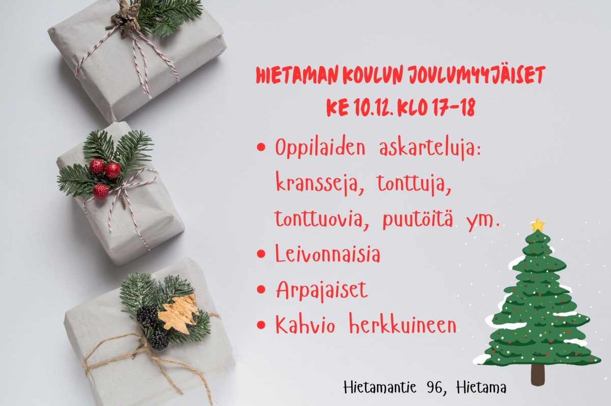 Hietaman koulun joulumyyjäiset ke 10.12.2025 klo 17 - 18 ihanassa kyläkoulun joulutunnelmassa.