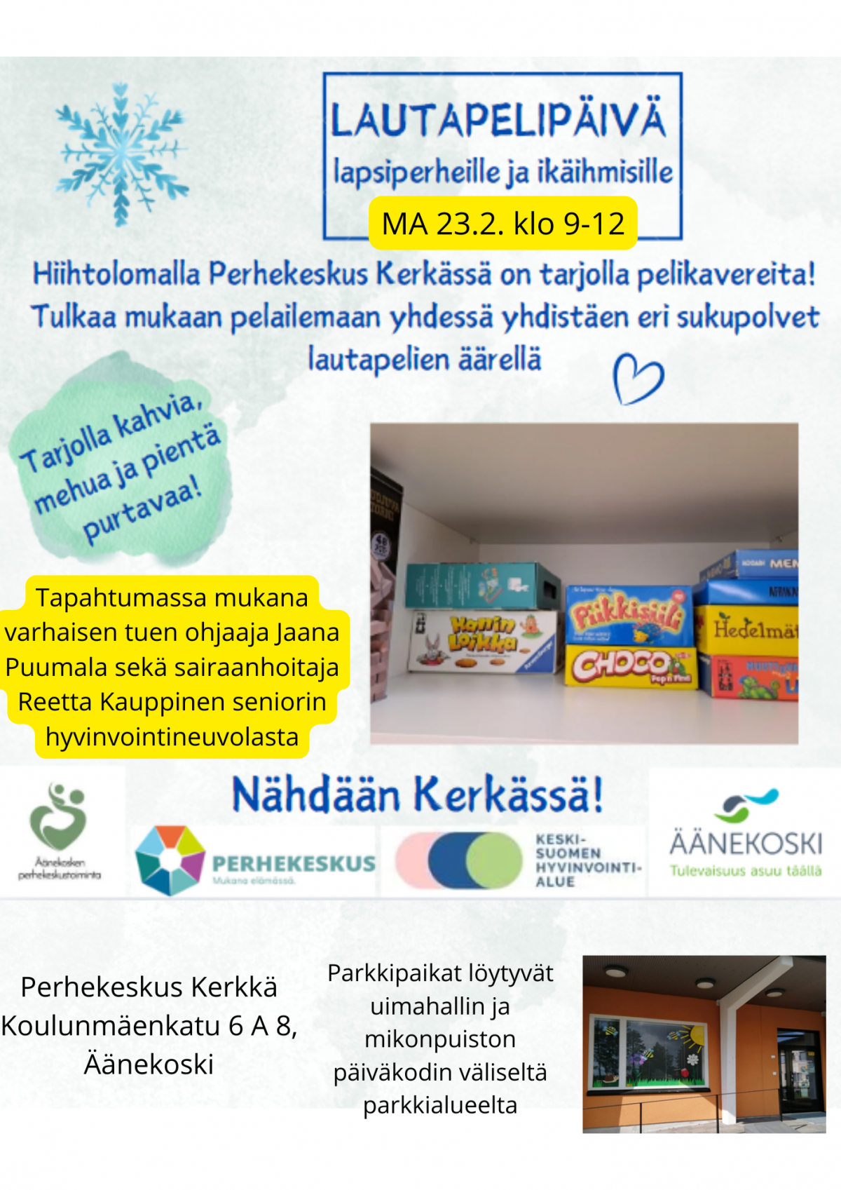 Perhekeskus Kerkässä maanantaina 23.2. klo 9-12.