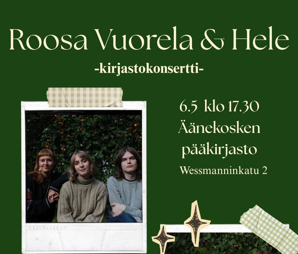 Roosa Vuorela on nuori laulaja-lauluntekijä, jonka kappaleet puhuttelevat ja koskettavat. Kappaleiden keskiössä pyörivät tarinalliset lyriikat sekä heleät laulumelodiat. Roosan rehellinen tulkinta jää vaivatta kuulijoiden mieliin.