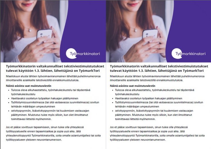 - Työmarkkinatorin valtakunnalliset tekstiviestimuistutukset 1.3.2026 lähtien
